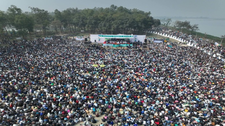 রৌমারী সিজি জামান মাঠে ধানের শীষের বিশাল জনসভা, হাজারো মানুষের ঢল।