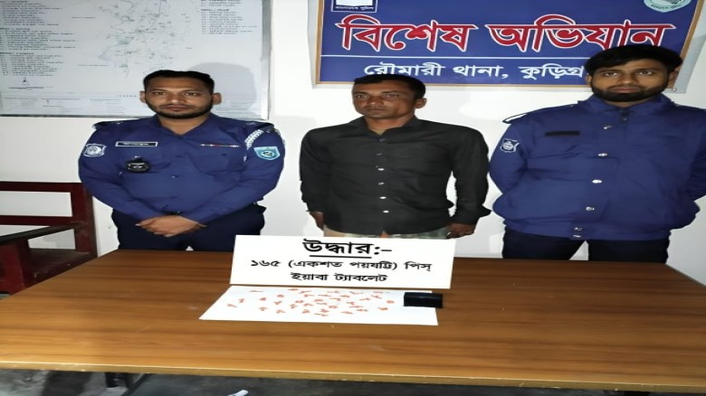 রৌমারীতে ১৬৫ পিস ইয়াবাসহ ১ কুখ্যাত মাদক